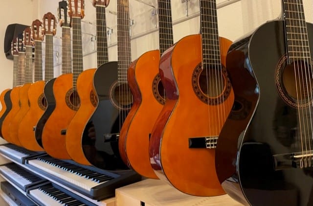 Elever i år 3, 4, 5 och 6 lär sig melodispel och enkla ackord på ukulele, gitarr och keyboard. De får även prova på elgitarr och elbas.